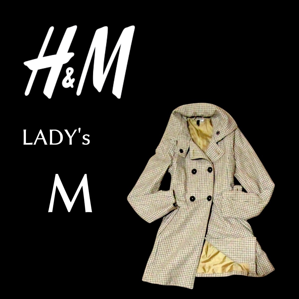 - 送料込み レディースMサイズ H&M エイチアンドエム チェック柄Aラインウールコート