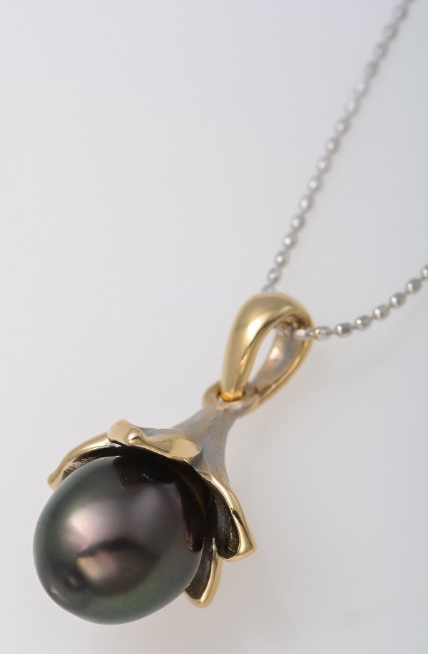 - K18WG/YG ブラックパール ネックレス 品番n21-296