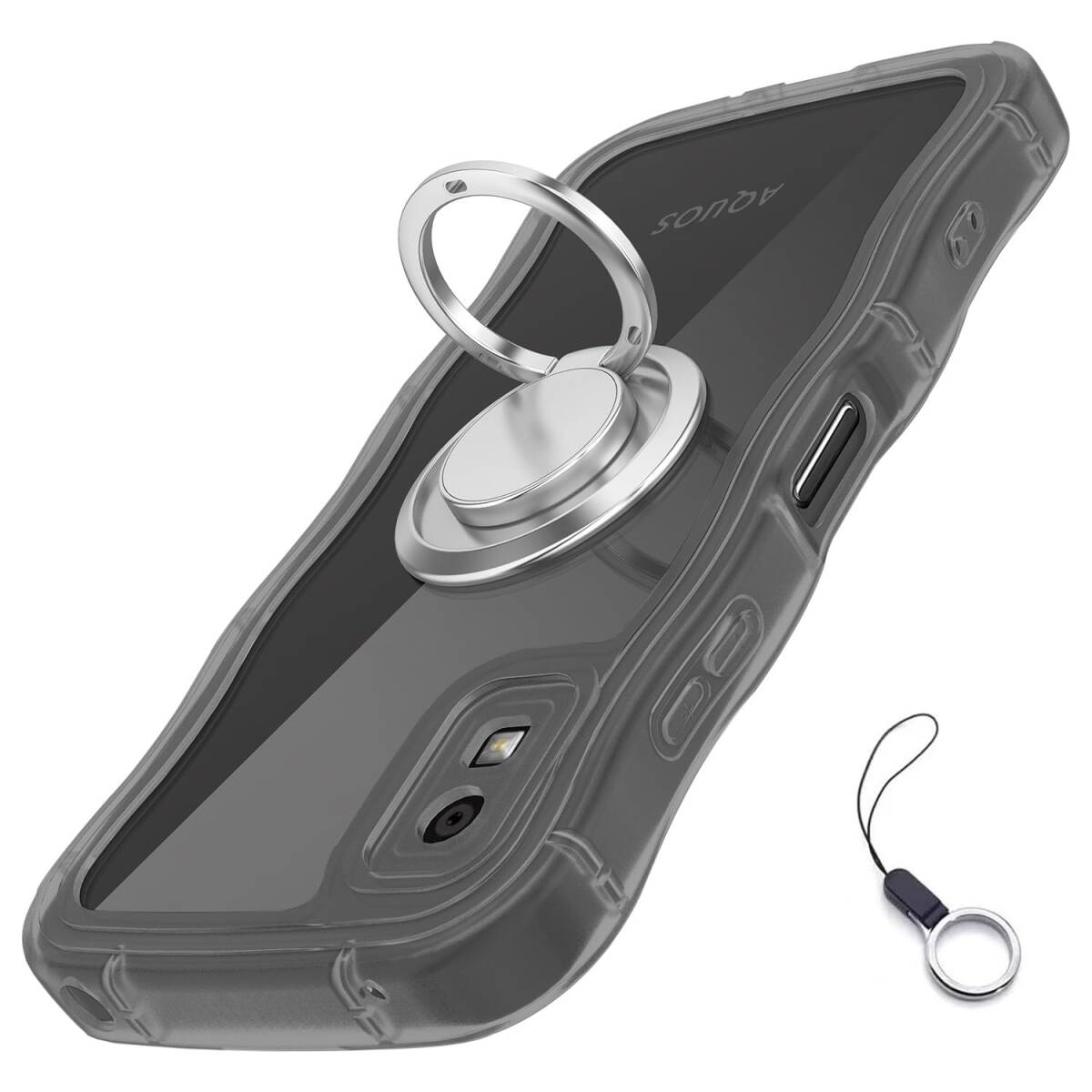 - アクオスウィッシュ3かわいいうねうね 滑り止め 韓国 透明黒 極薄 超軽量 人気 耐衝撃 TPU [シルバーリングスタンド付き!]