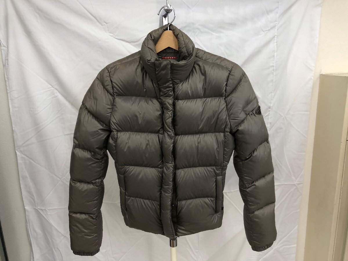 - 【PRADA】 プラダ ダウンジャケット サイズ表記:40 ホワイトグース使用 カーキグレー系カラー ブルゾン SY02-H8E●