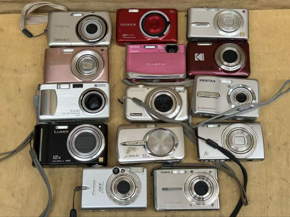 > コンパクトデジタルカメラ14台セットCanon PC1084/CASIO EX-Z400/OLYMPUS/FUJIFILM/Panasonic/RICOH/PENTAX/KODAK FZ55など未確認 ジャンク