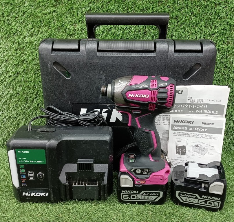 - 中古品 HiKOKI ハイコーキ 14.4V コードレスインパクトドライバ + バッテリー 2個 + 充電器 + ケース セット WH14DDL2 2LYPK(R)
