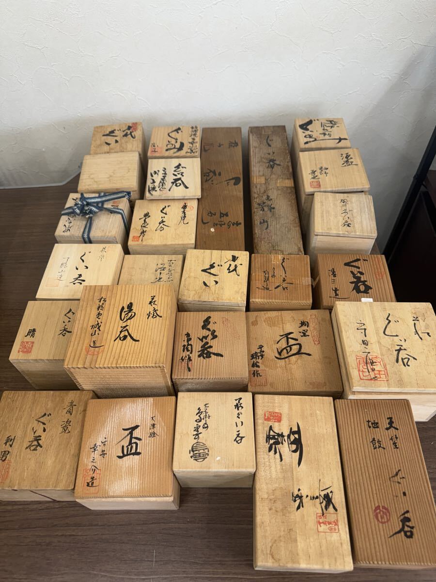 - ぐい呑 酒盃 26点まとめ 木箱 盃 色々 酒器 利男 晴 など 陶器 ぐい呑み