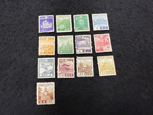 > 9、日本切手 第1次昭和(御朱印船)(水力発電所)(大正池)(ガランビ灯台)(日光陽明門)(鎌倉の大仏)他 おまとめ 13枚 未使用