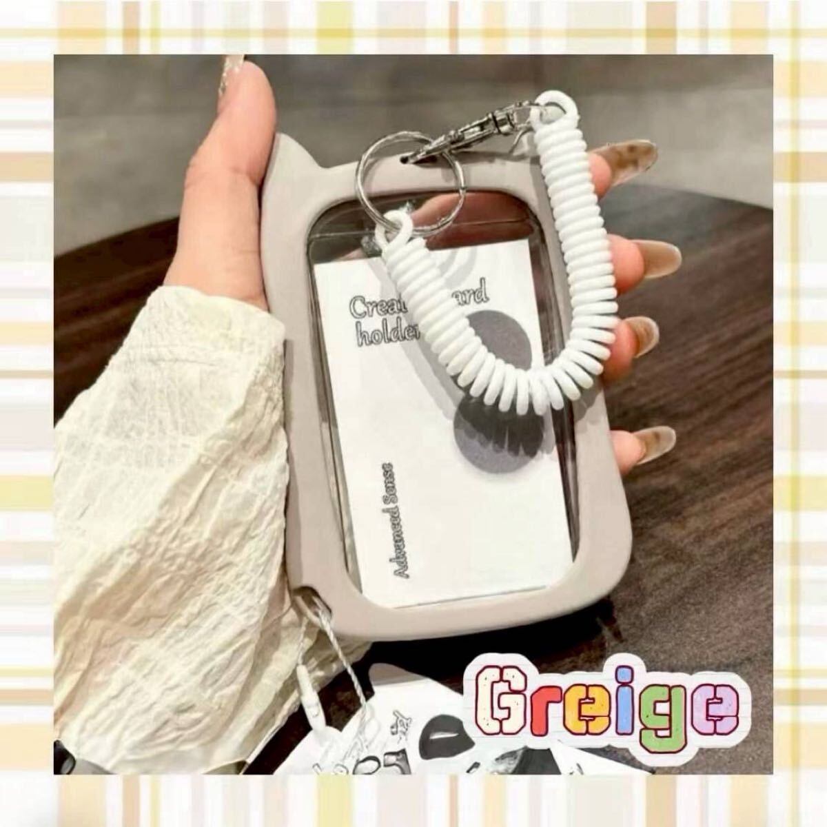 - 猫耳 トレカケース パスケース 定期入れ キーホルダー 推し活 グレージュ