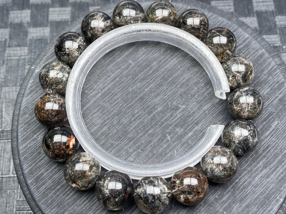 - 即決 0617k681 天然水晶【20Aガーデンクォーツ&ブラックルチル共生】黒針ブレス 12.5-13mm(新品)