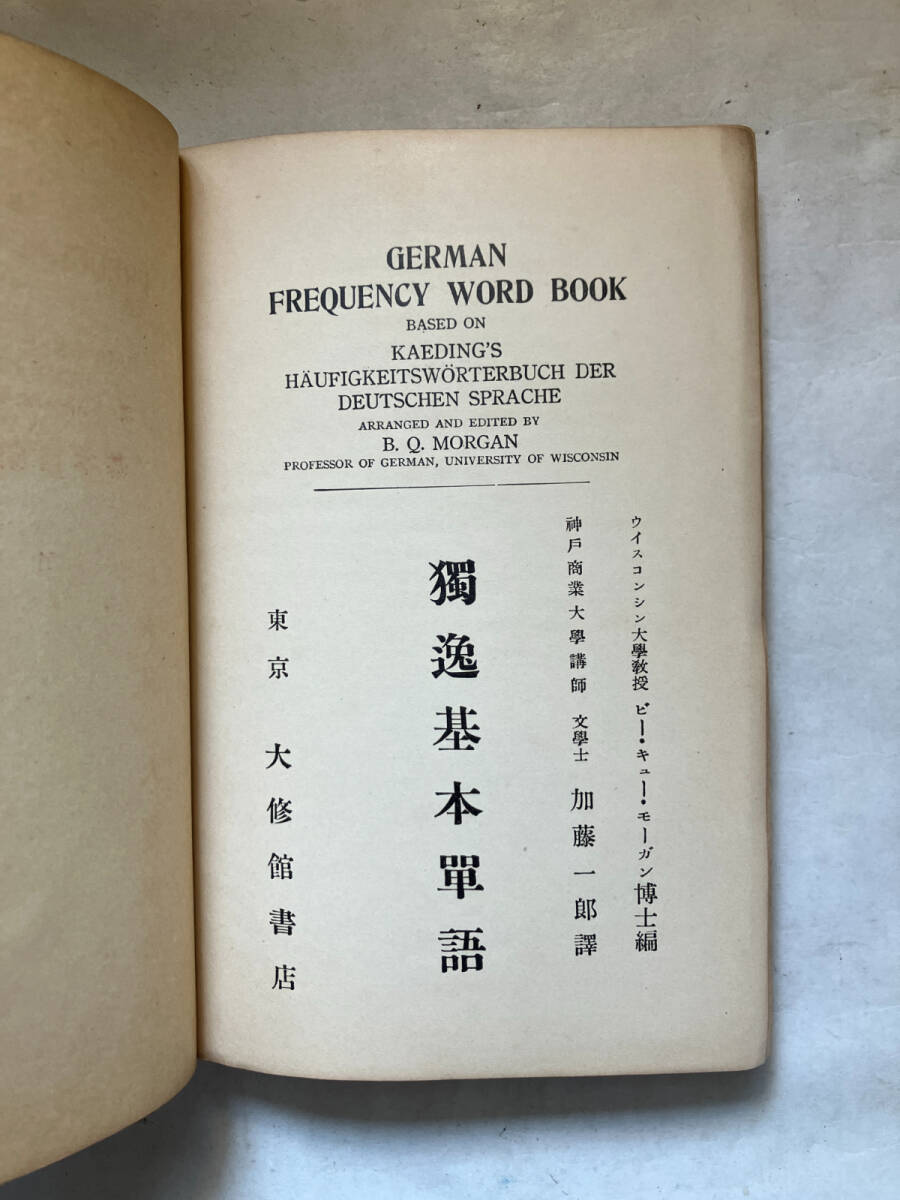 - ●再出品なし 「基本語彙叢書 独逸基本単語」 B.Q.MORGAN:著 加藤一郎:訳 大修館書店:刊 昭和10年8版