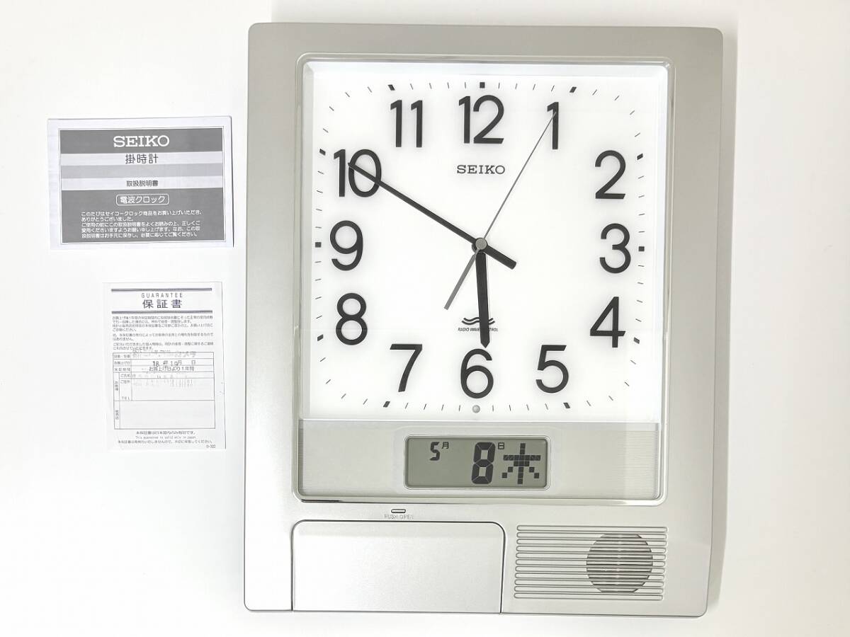 - [動作確認済]セイコークロック 掛け時計 オフィスタイプ チャイム プログラム機能 日付 カレンダー 電波 アナログ 銀色 メタリック PT201S
