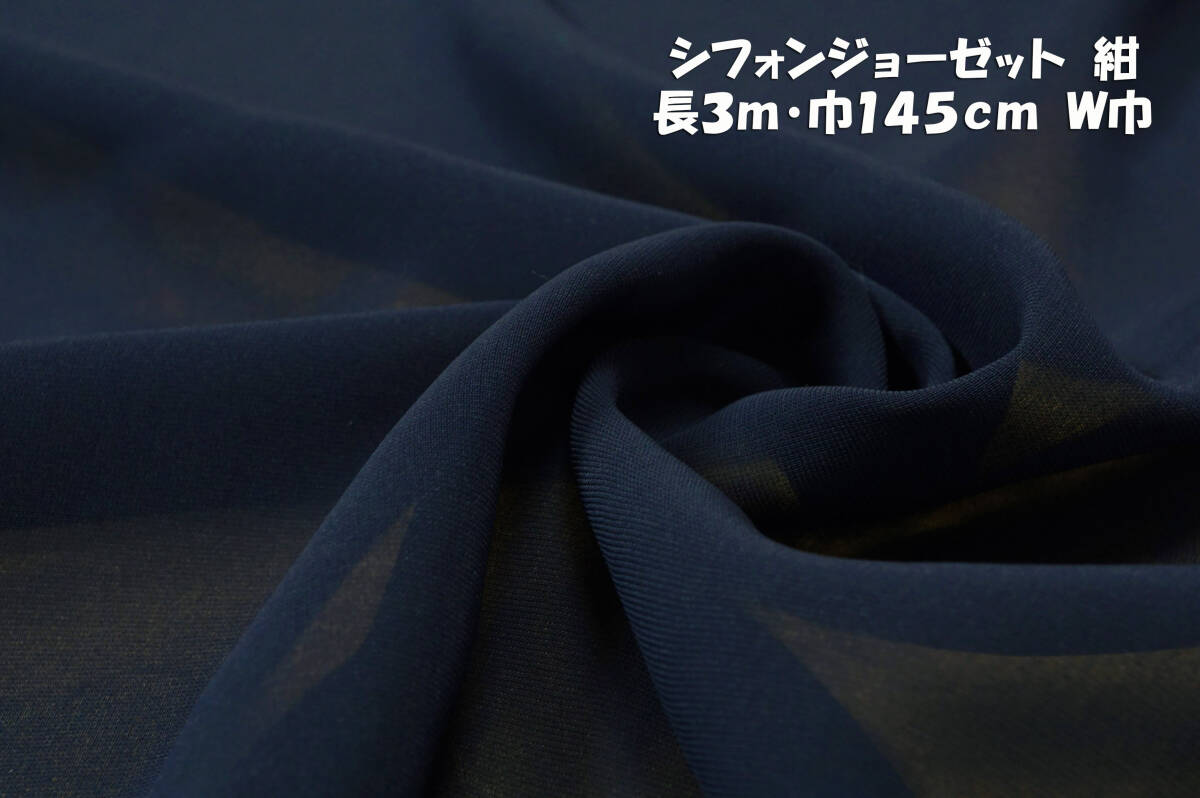 > *シフォンジョーゼット 紺 微薄ソフトひらひらドレープ強透過 長3m巾145㎝ 異素材組み合わせ レイヤード ふんわり袖 裾フリル