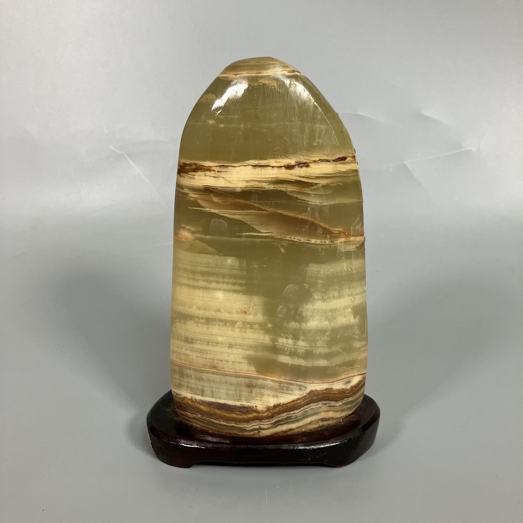 - K3-257 天然石 原石 瑪瑙 縞瑪瑙 台座付き 約816g インテリア 置物 観賞石 中古品