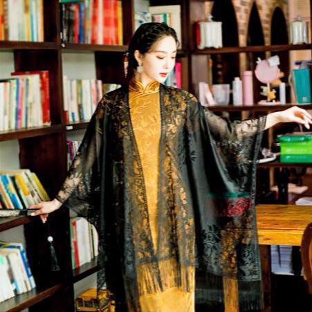 - 【ブラック】レースショール フリンジ付き正装だけでなくカジュアルにも着こなせるのでこれからの時期に欠かせない1枚にもなります。
