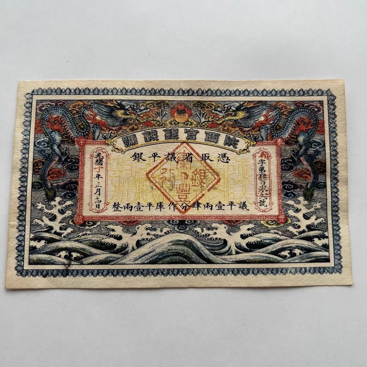 - 送料無料 中国紙幣 銀票 清朝 光緒元宝壱 陝西省造 双竜銀票 大清銀票 美品 外国貨幣 簡易包装 郵便発送 ZH693