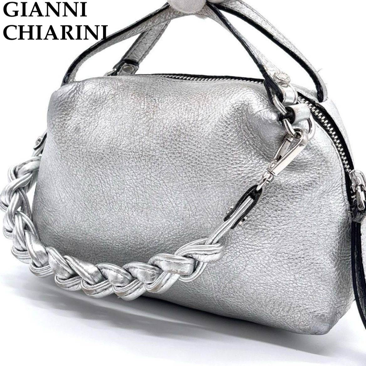 - GIANNI CHIARINI ジャンニキャリーニ アリファ S 編み込み 2way ショルダーバッグ シルバー カバン 鞄 バック 銀色 レディース