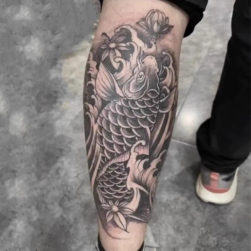 - 【送料無料!タトゥーシール】★ 鯉 刺青シール 和柄 フェイクタトゥー 14cm×28cm 腕 脚 リアル和彫 防水・耐久性あり (C009)