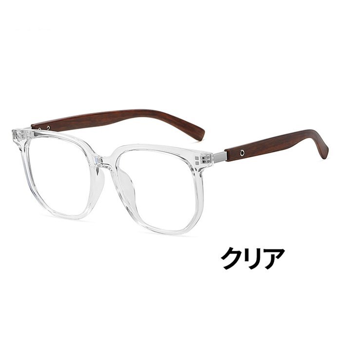 - PC用メガネ 度なし 軽量 ブルーライトカット 伊達メガネ スクエア メンズ レディース 木目調 収納ケース付き