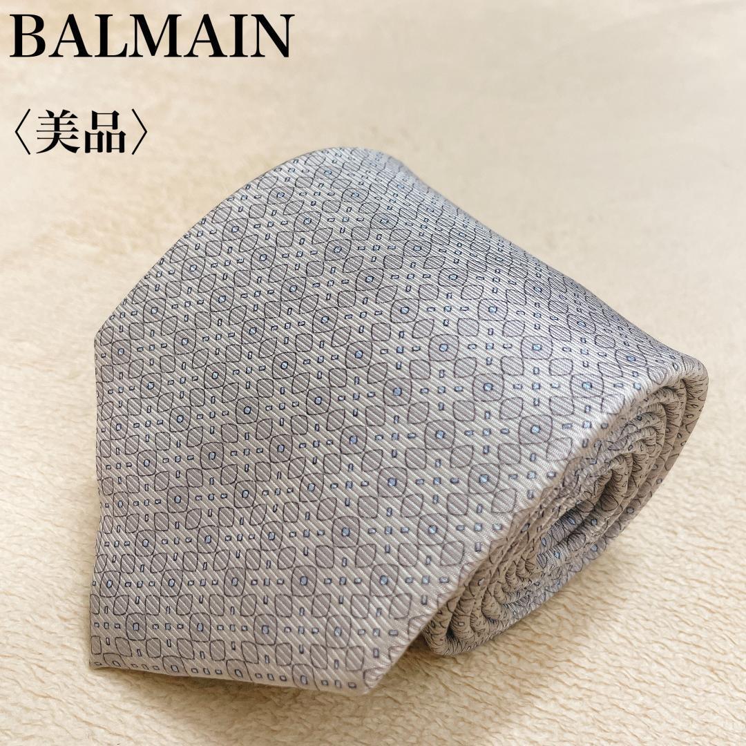 > 【美品】BALMAIN バルマン ネクタイ グレー 総柄 シルク100% ビジネス フォーマル 高級感 エレガント スーツ パーティー 上品 4-25