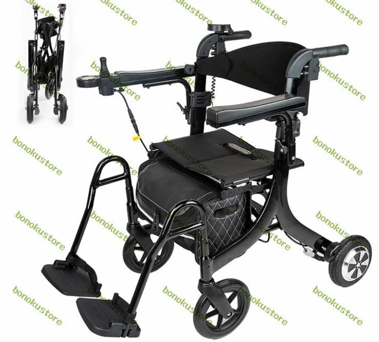 - 電動車椅子 電動車いす 軽量 折りたたみ式電動車椅子 電磁自動ブレーキ 介助・自走 兼用 多機能電動アシスト歩行車 四輪車 介護用歩行車