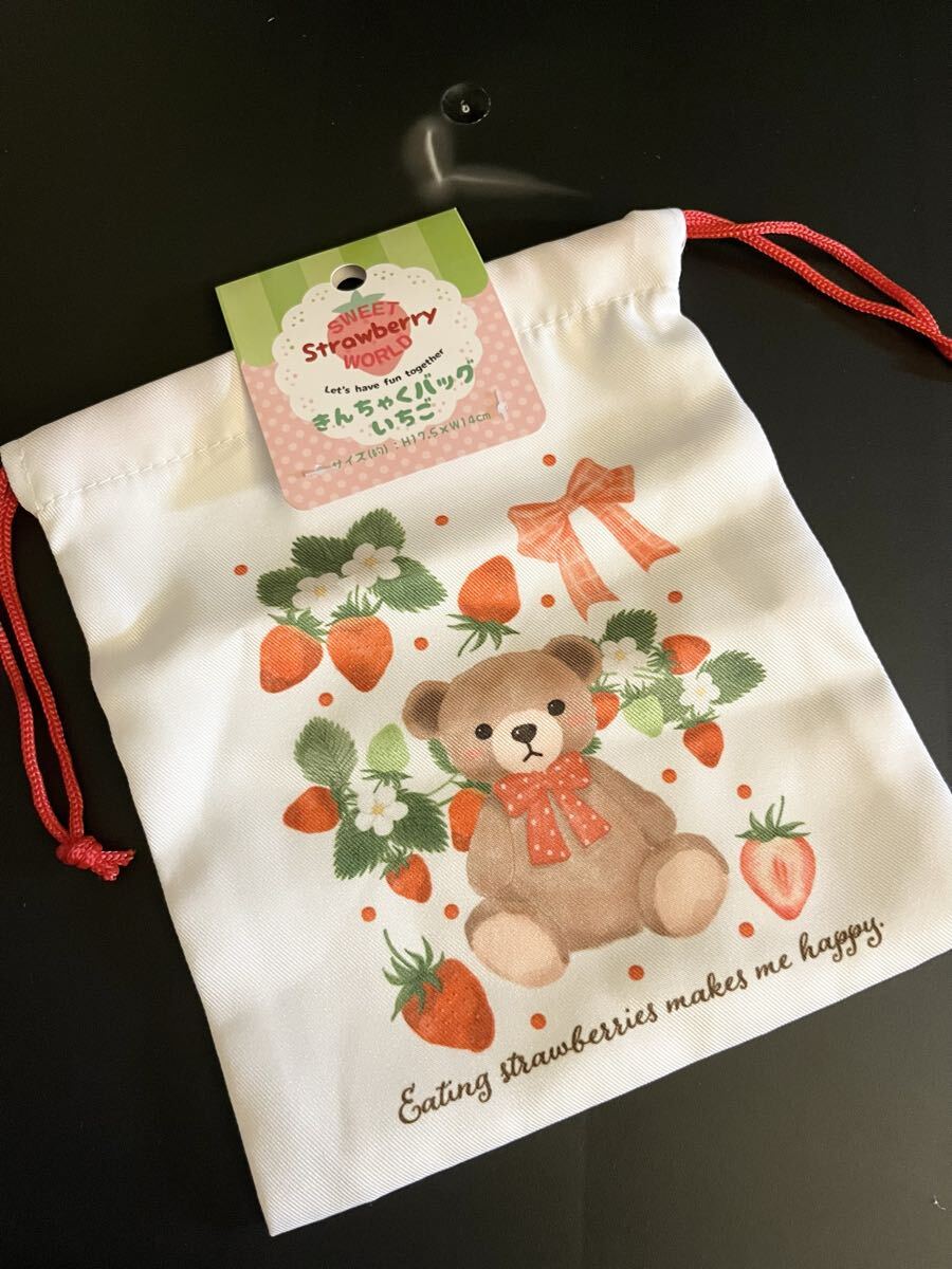 - セリア キャンドゥ きんちゃくバッグ 巾着 いちご くま