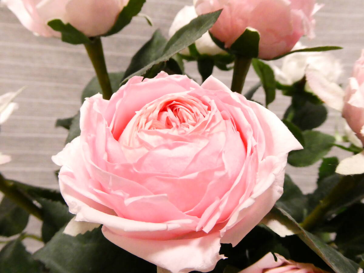 - バラのプリザーブドフラワー ホワイト&ピンク10本 高さ45Cm マジカルウォーター入りガラス花瓶 USED
