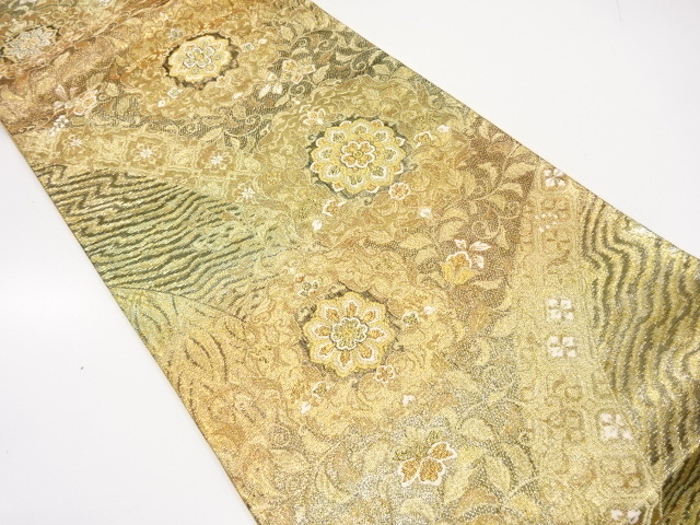 - 美品 華紋に花更紗模様織り出し 袋帯 (IBB2K-004)