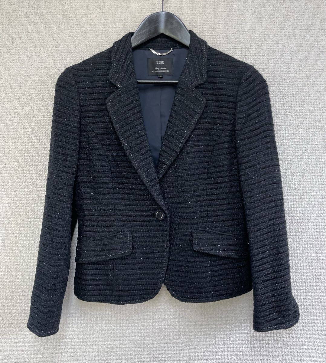 - 美品 23区 オンワード樫山 ツイードジャケット ウールジャケット ネイビー 38号 レディース Mサイズ 日本製