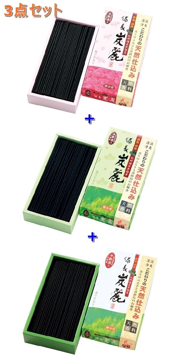 - 線香セット 贈答用 ギフト 備長炭麗 梅のかおり + 備長炭麗 森のかおり 100g + 備長炭麗 森のかおり 120g お供え お彼岸 お線香 供物 お盆