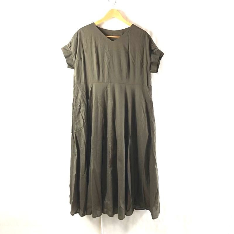 - タマミワタナベ tamami watanabe ワンピース ロング 半袖 Vネック 綿100% ポケット 裏地付き 深緑 カーキ系 9ARサイズ 2025090200152