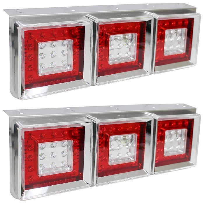 - 汎用 中型 大型 トラック フルLED 24V 角型 テール ランプ 3連 赤/白 テール ライト ダンプ トレーラー 60cm×21cm 幅600mm