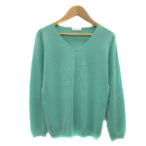 - ボールジー BALLSEY トゥモローランド ニット カットソー 長袖 Vネック 無地 ウール シルク混 カシミヤ混 38 M 緑 グリーン レディース