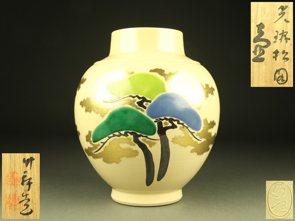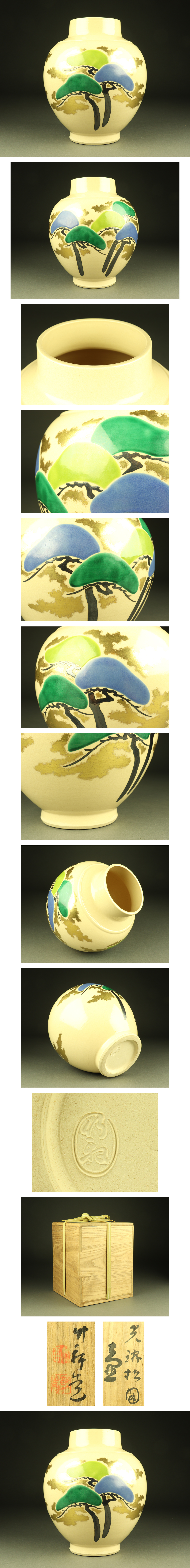 - 【宇】3506 三浦竹軒造 光琳松図 壷 花瓶 共箱