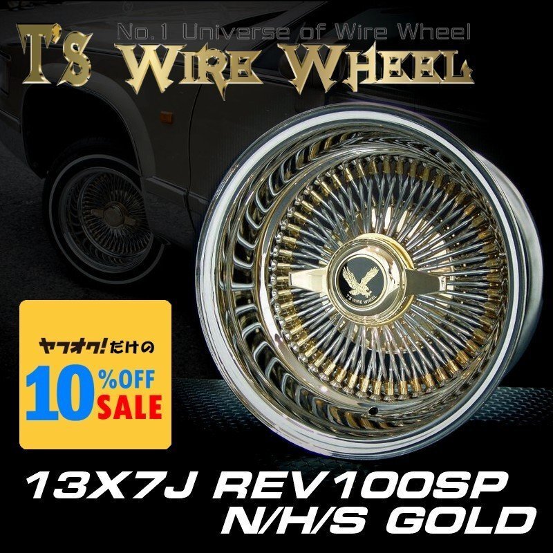 - ● 特価 T's WIRE ワイヤーホイール 13×7J REV リバース [ニップル / ハブ / スピナー] ゴールド 100SP ホイール 4本 + 付属品セット