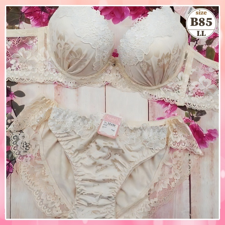 > Zb8501◆新品 ブラショーツセット【B85/LL】下着 ランジェリー 脇高 美谷間 シャドーフラワー クリーム