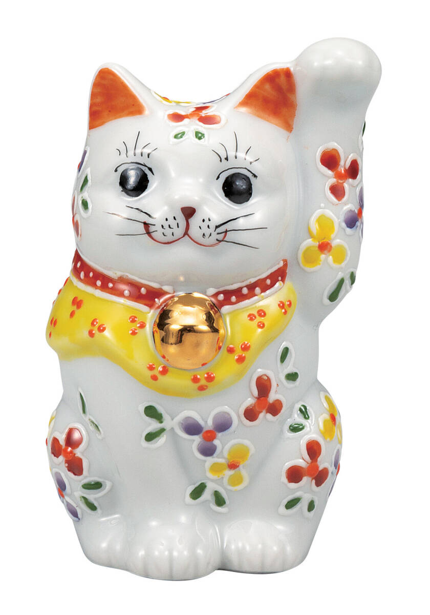 - 九谷焼! ☆小花・招き猫3.3号☆ K9-1564 新品 商売繁盛 縁起物 千客万来 開運 置物 招き猫 ギフト