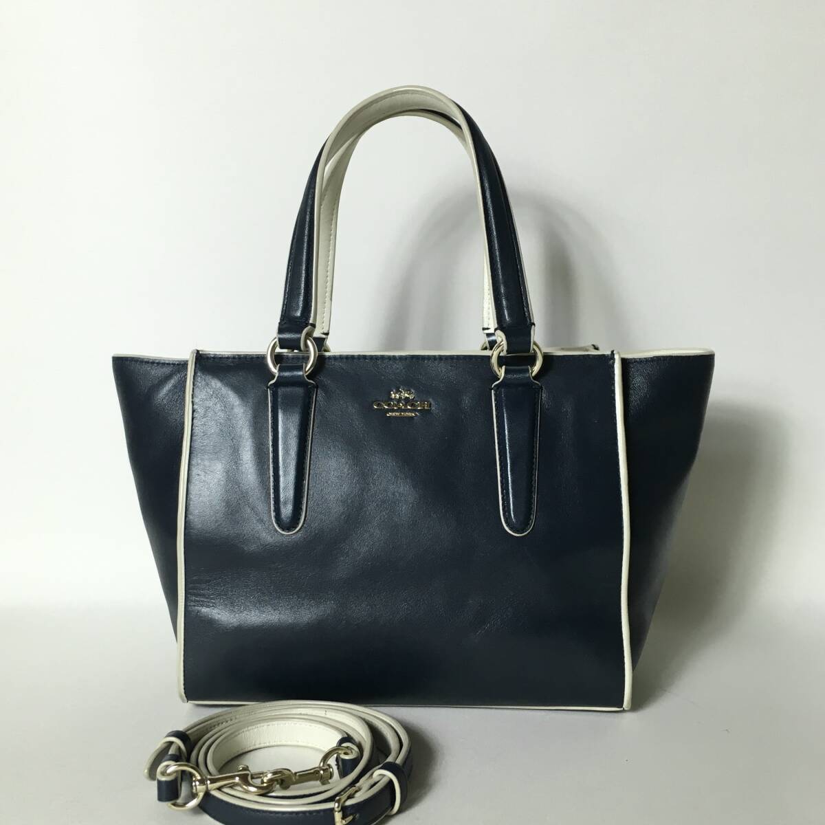 - 79B30|美品|コーチ 2WAY ハンドバッグ レザー ネイビー