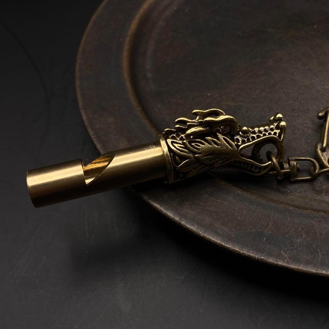 > 188 真鍮 キーホルダー ドラゴン 龍 笛 ホイッスル ビンテージ 風水 金運 開運 レトロ アンティーク 真鍮製 チャーム パーツ ハンドメイド