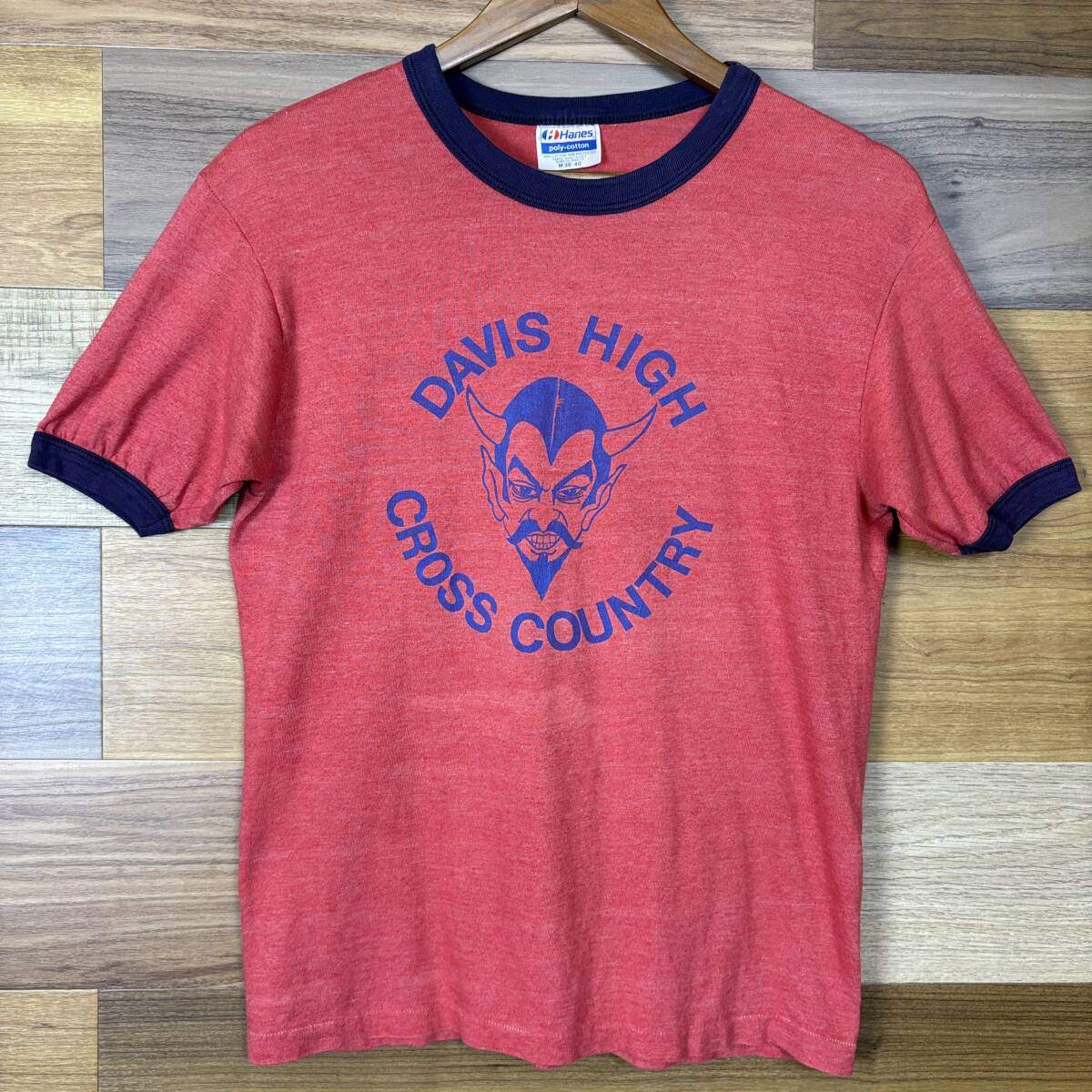 > 80s Devil デビル プリント リンガー T-sh Tシャツ サイズ メンズ M 裾シングルステッチ 80年代 VINTAGE アメカジ 古着 r25090494