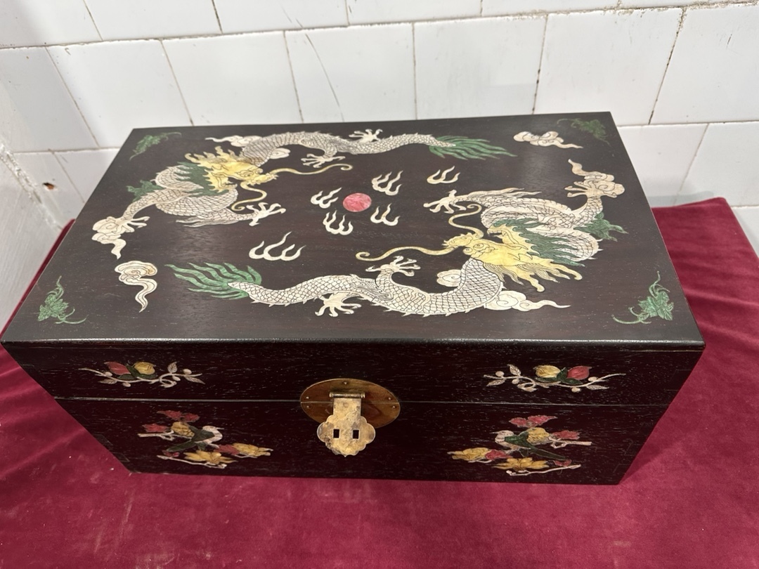 - 清時代 古紫檀木彫 双龍 官箱 宝箱 秘蔵 壁挂 墻挂 中国唐物 時代物 骨董 中国古美術 古家具 古置物 木製 東洋彫刻 古賞物 中国古玩924