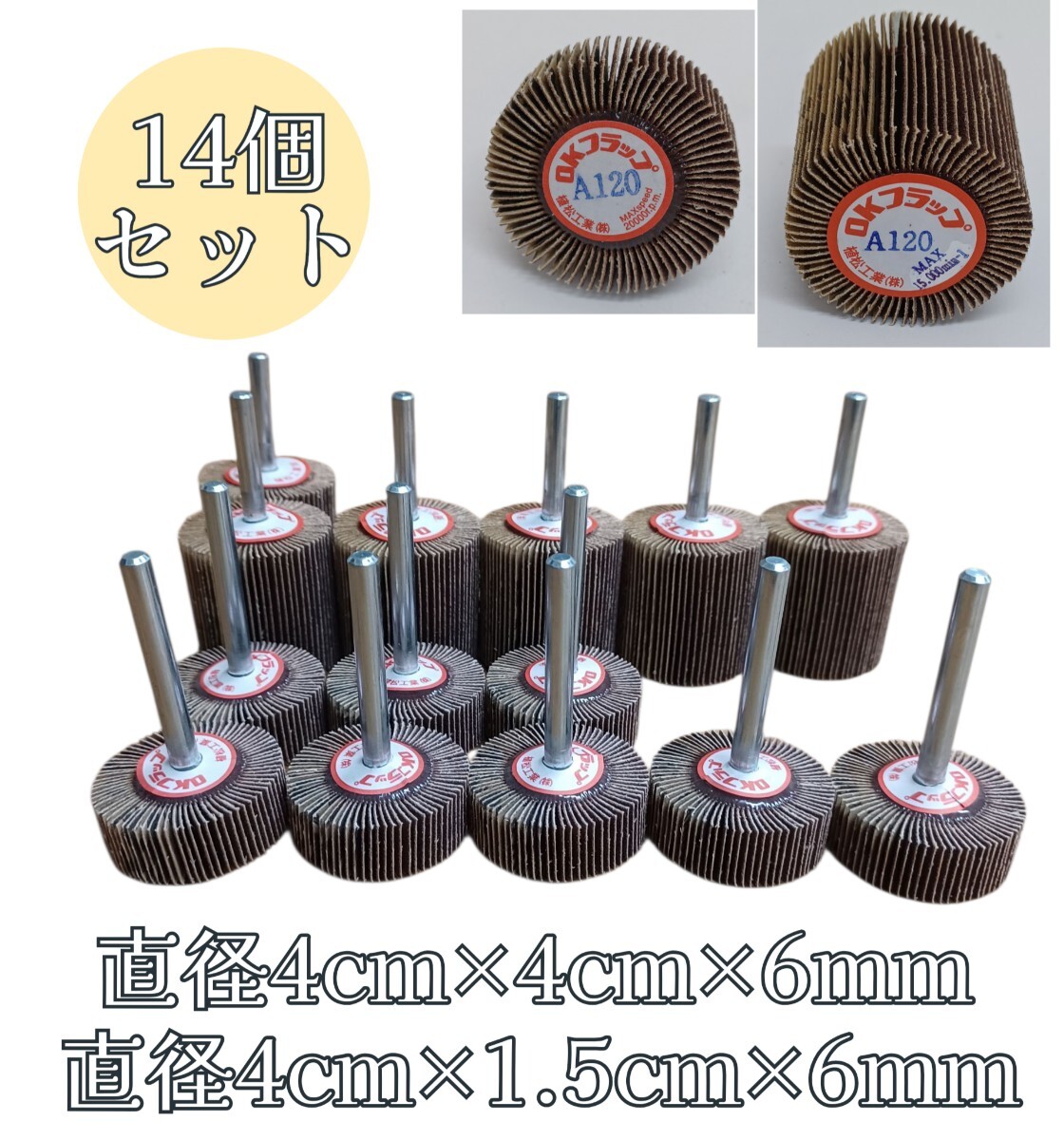 > 岩②)軸付きフラップホイール 14個セット 粒度120番 フラップホイール OKフラップ グラインダー 研磨 研削 工具 250924(N-1-3