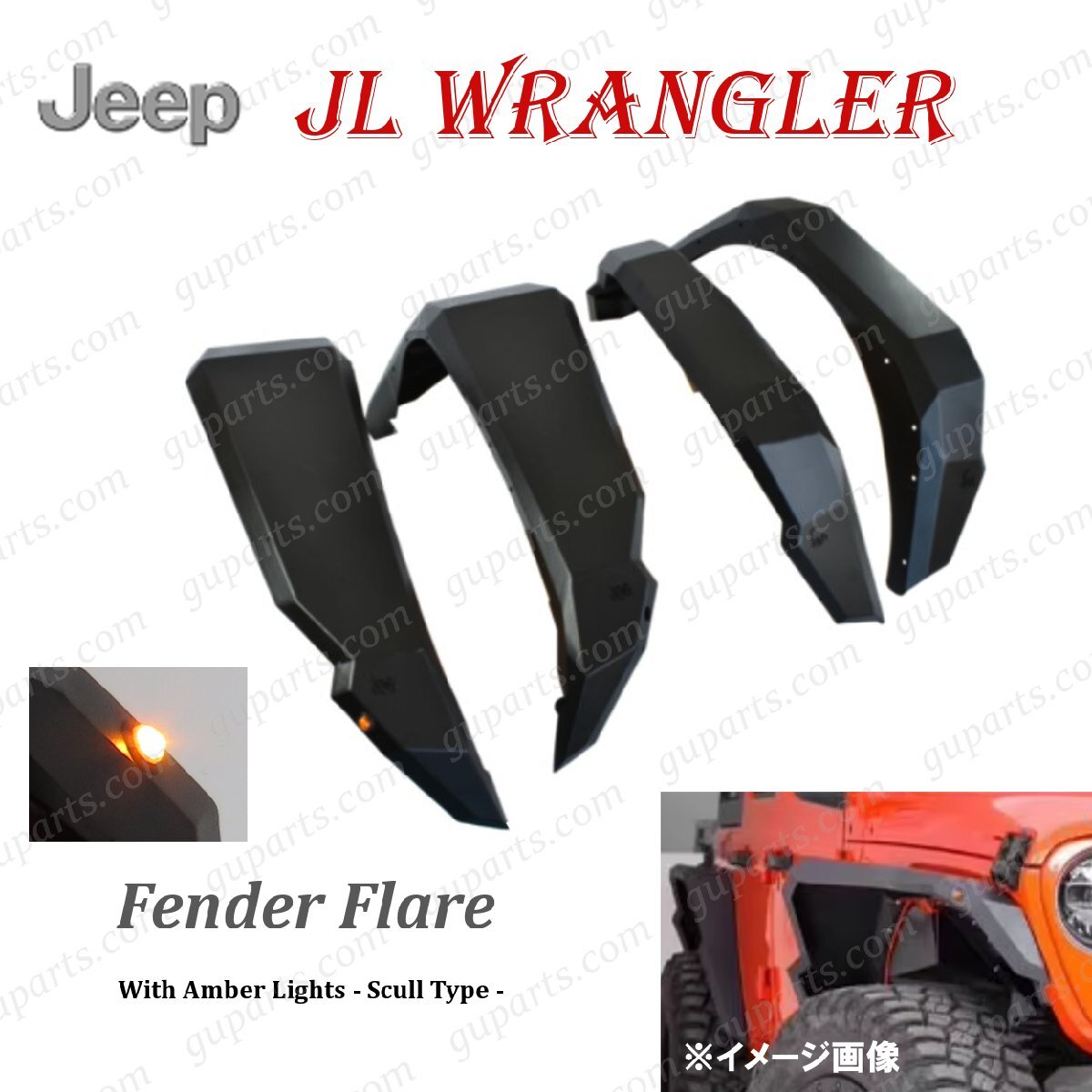 - JEEP JL ラングラー アンバーライト 付 フェンダーフレア オーバーフェンダー 4ドア 1台分 フロント リア 前後 左右 スカルタイプ