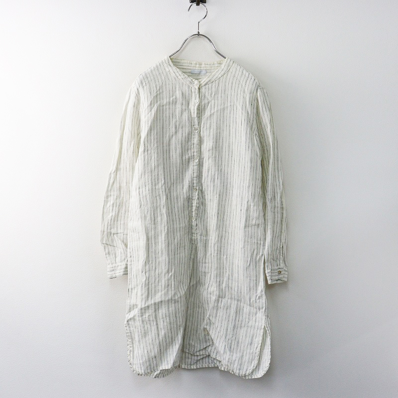 - フォグリネンワーク fog linen work リネン100 ストライプ バンドカラー チュニック‖アイボリー ワンピース シャツ 長袖【2400014605815】