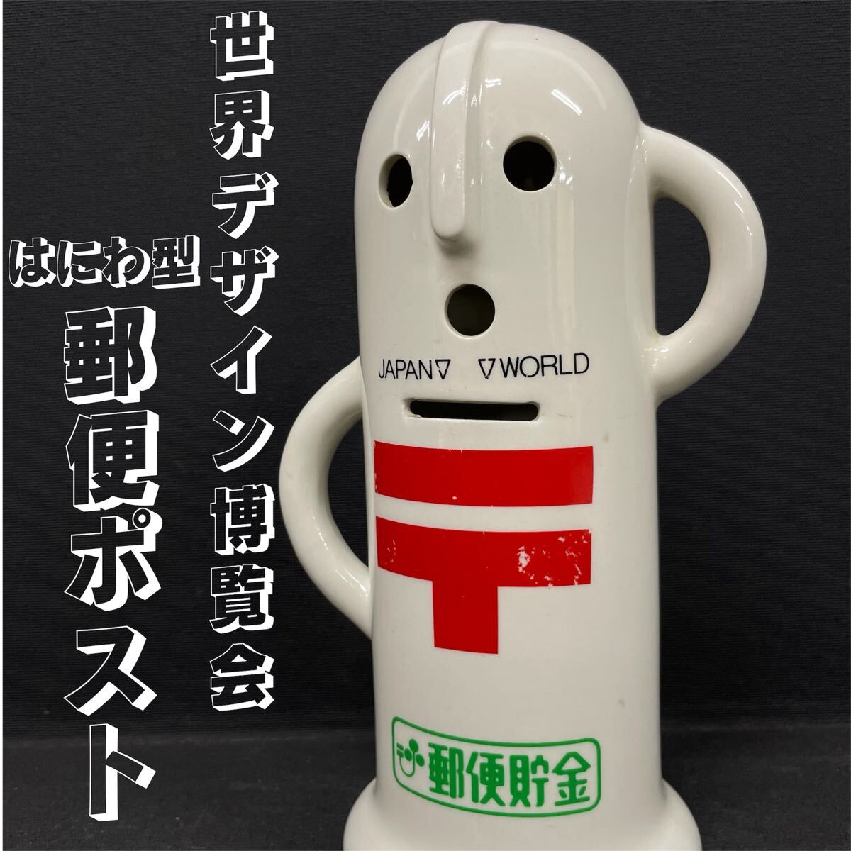 - SR■ 世界デザイン博覧会 1989年 日本郵便局 はにわ型 貯金箱 名古屋城会場 郵便ポスト ミニチュア版 陶器 レトロ コレクション