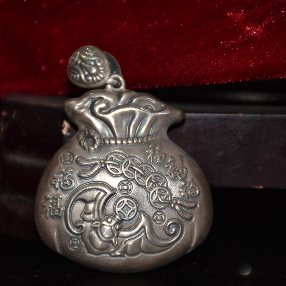 - 「東洋美術」中国骨董 【スターリングシルバーのマネーバッグネックレスペンダント】 珍品 精美 收藏品 中国の古い美術