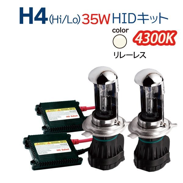 > HID H4 キット 35W 12V (Hi/Lo) 4300K リレーレス ヘッドライト ハイエース アルファード N-BOX フィット…ete 1年保証