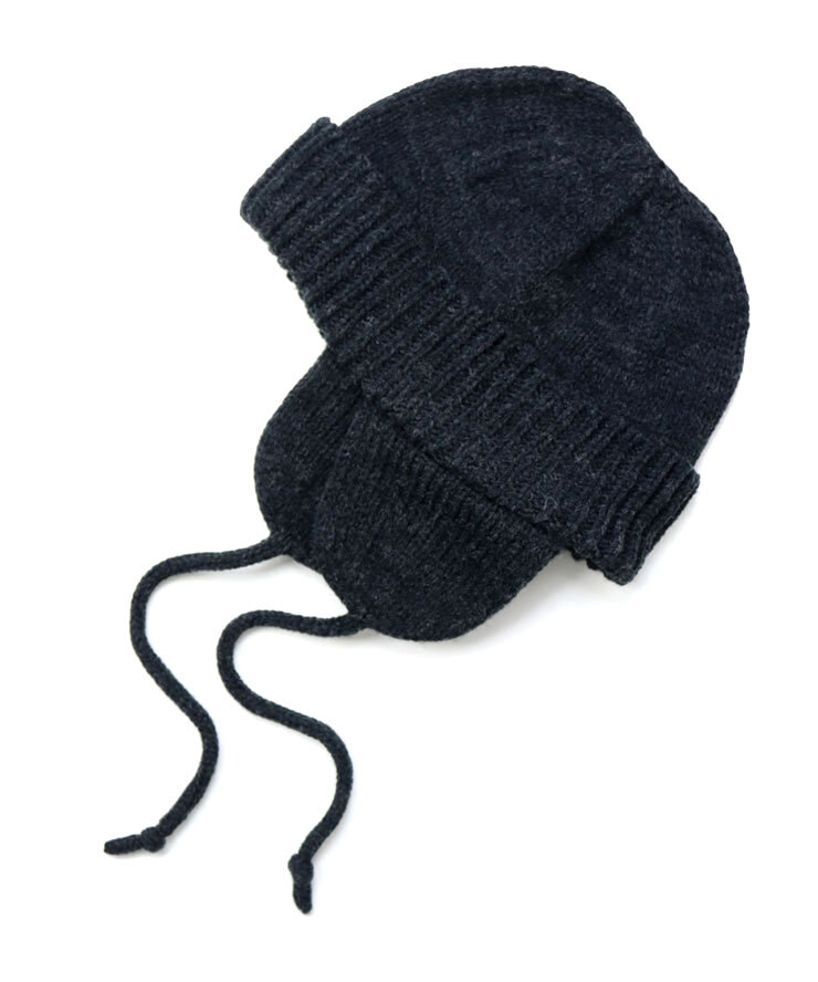 - <ブラック>Regnuu イヤーフラップ ウール混 ニットワッチ ニット帽 耳あて 帽子 あったかい 防寒帽子 防寒 暖かい かわいい 防風