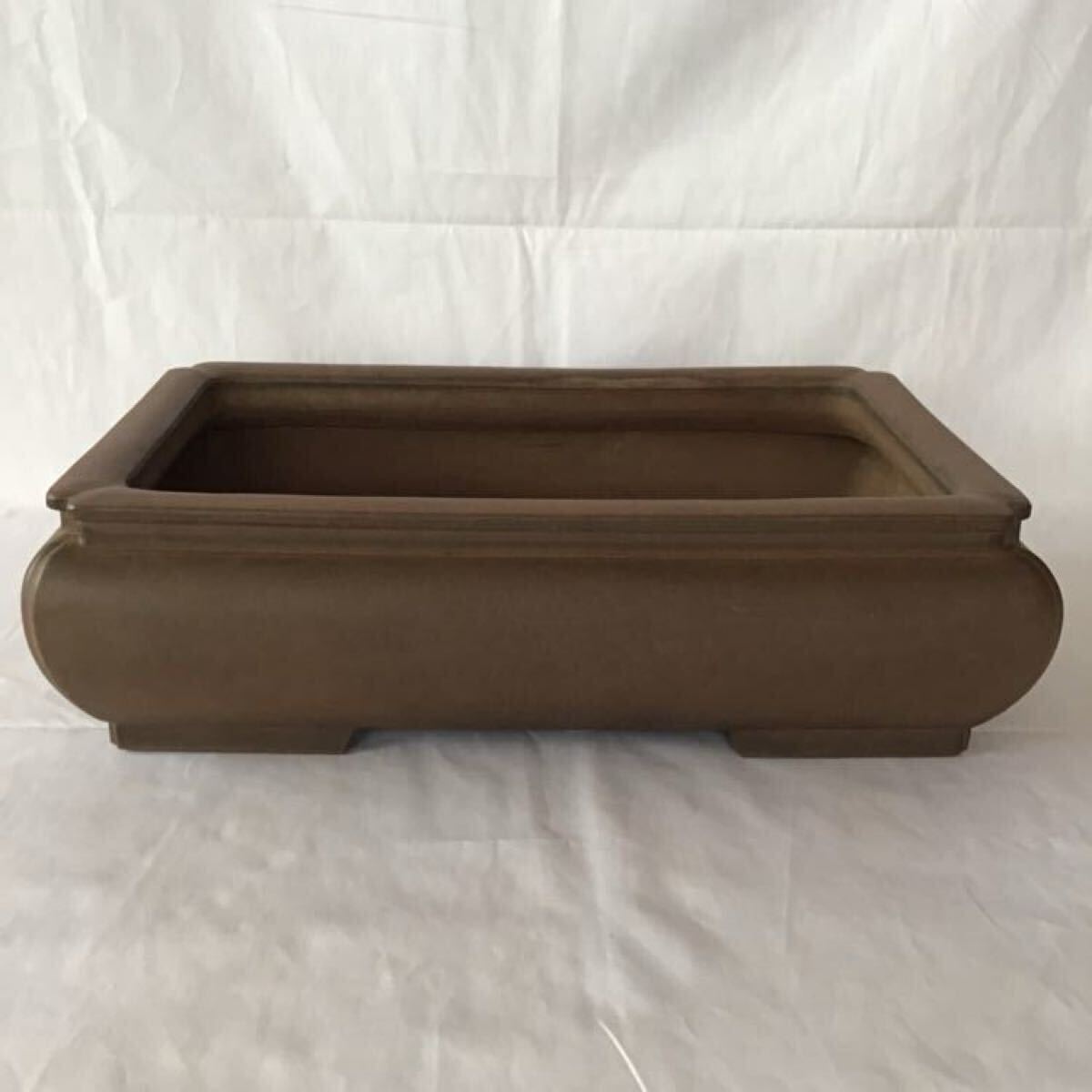 - 時代物 希少 蔵出し【古渡 中国古鉢 古盆栽鉢『振新廠製』在銘 烏泥袋形鉢】
