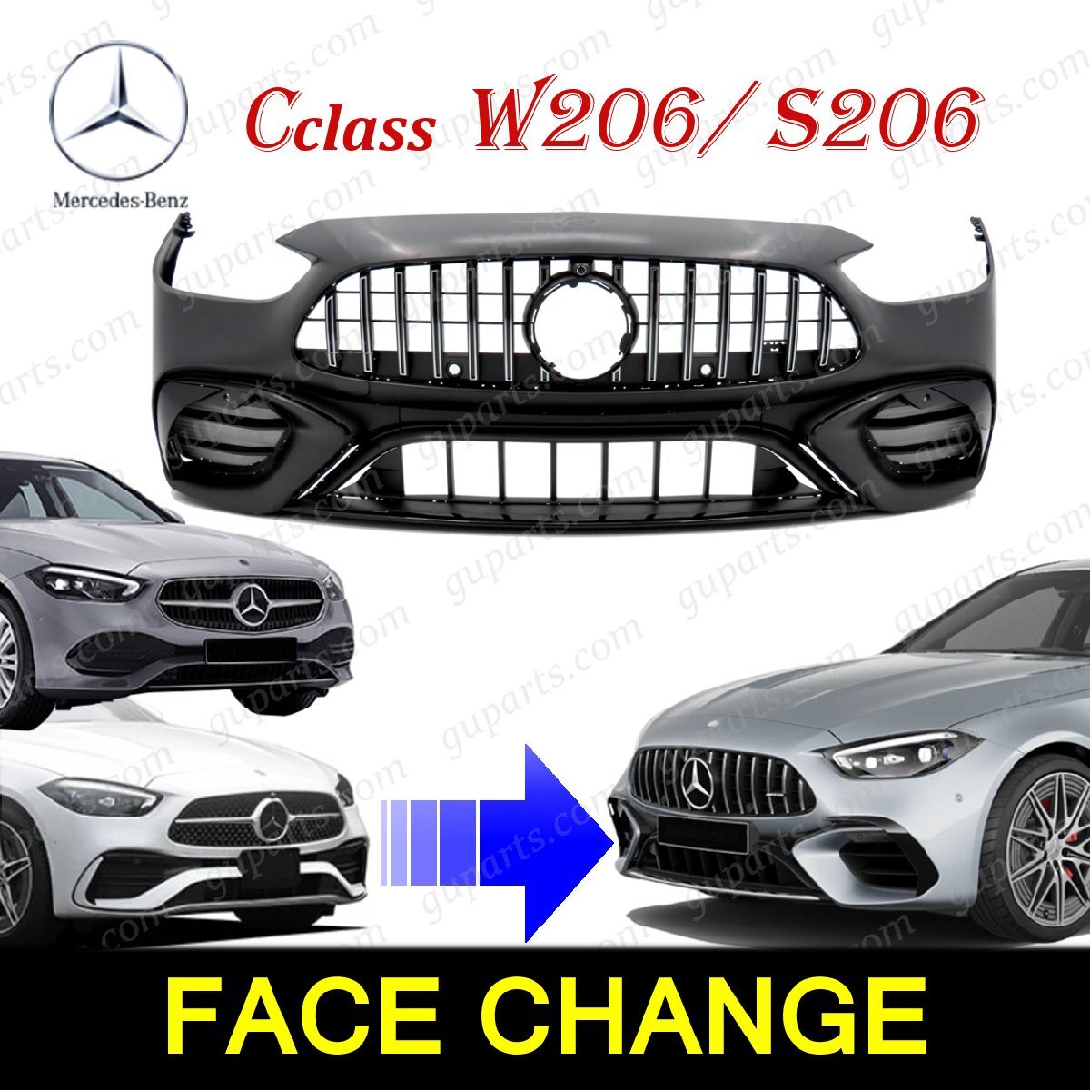 > ベンツ C W206 S206 2021~ C180 C200 C220d C350e C43 → C63 AMG フェイスチェンジ フロントバンパー グリル セット