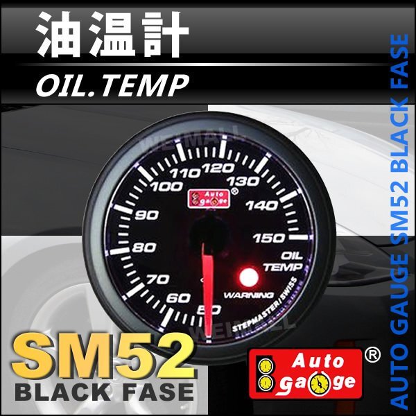 > オートゲージ 油温計 オイルテンプ 52Φ スイス製ステップモーター メーター ワーニング機能付 パーツ一式付 ブラック autoguage 52SMOTB