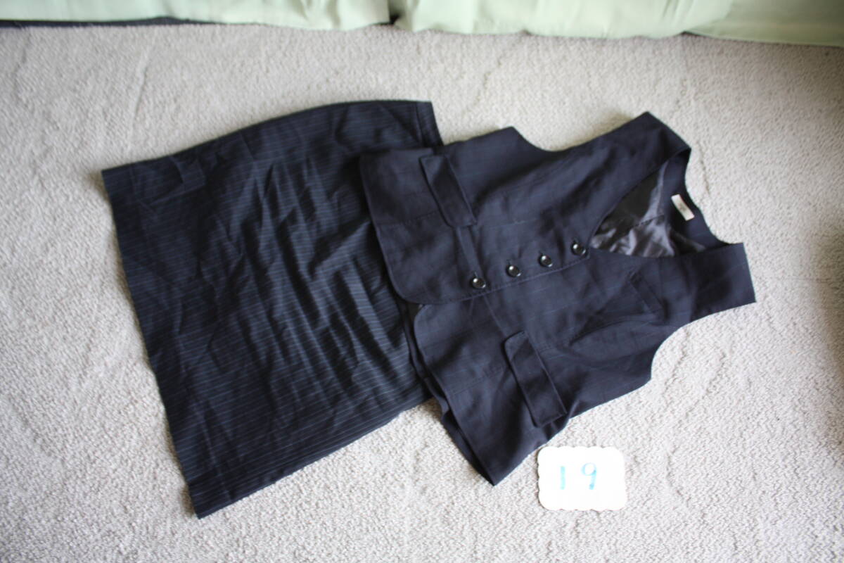 - OL制服・事務服セロリー紺格子ベスト・Amatir紺ストライプスカート 19号
