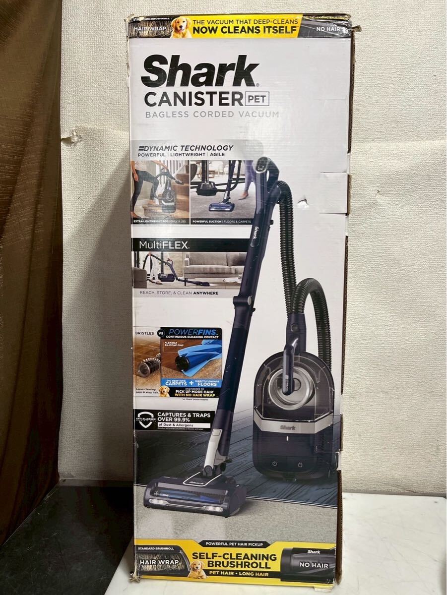 - Shark CZ351 66 ペット用キャニスター掃除機、バッグレス コード式 セルフクリーニングブラシロール パワーフィン搭載 ネイビー&シルバー