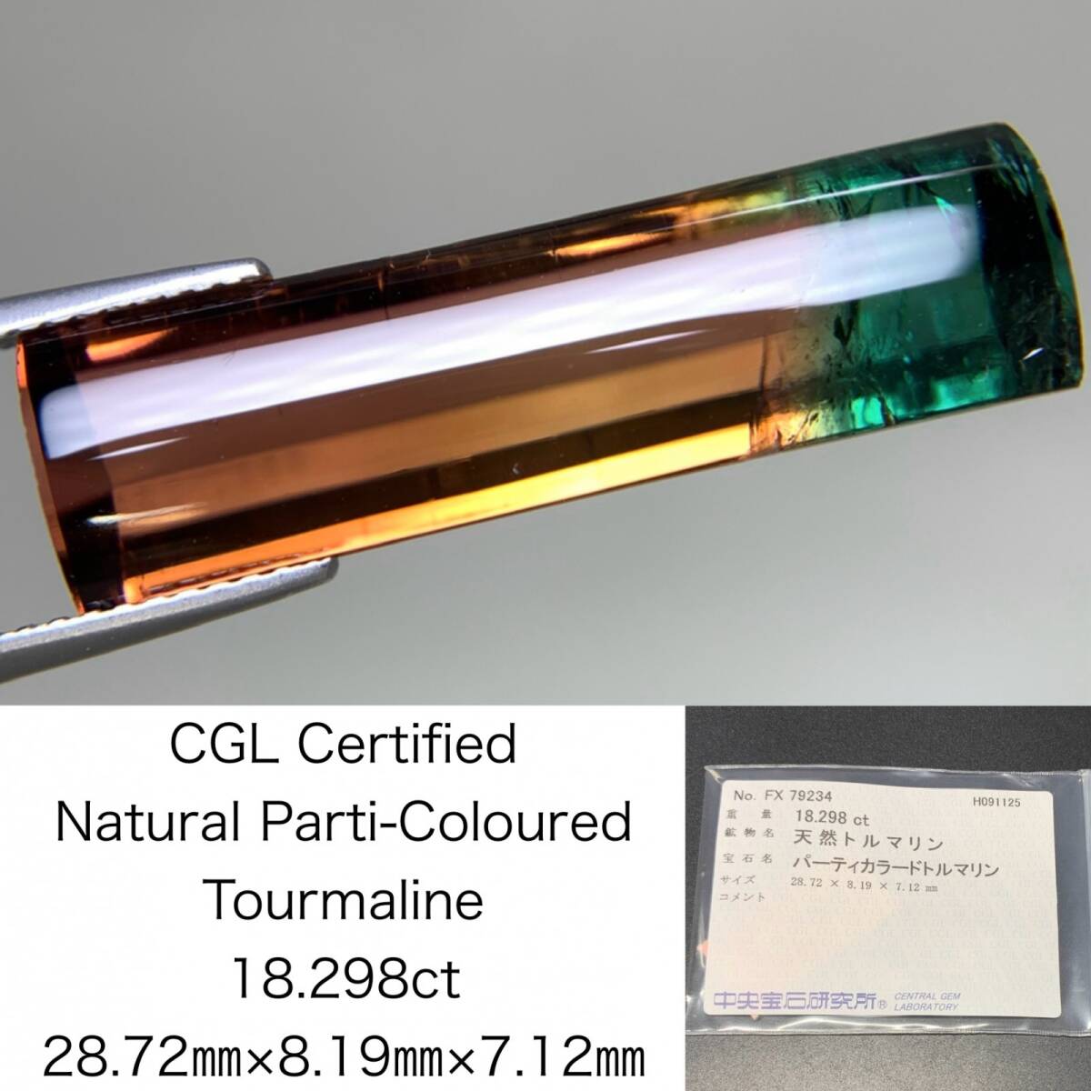 > パーティカラードトルマリン 天然 18.298ct 中央宝石ソーティング付き 28.72×8.19×7.12 ルース( 裸石 ) 6835Y